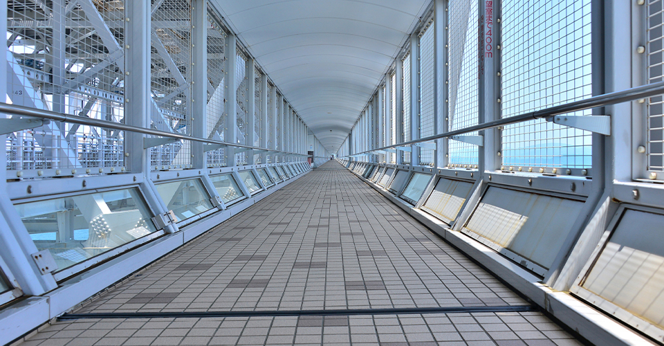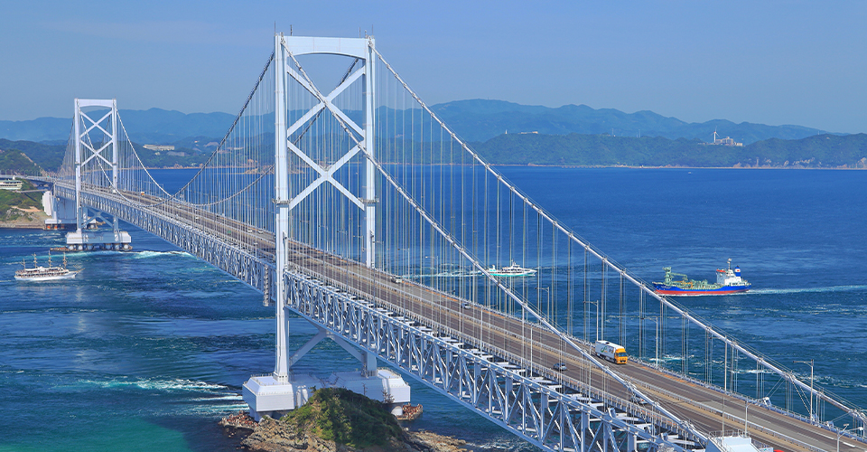 渦の道は、鳴門海峡にかかる大鳴門橋の車道下に設置された約450mの海上遊歩道です。料金は大人510円、中高生410円、小学生260円(税込)。途中4ヶ所に設置された海上45mのガラス床からは、鳴門海峡のうずしおを真上から見られます。海流の激しさや轟音を体感でき、スリル満点です。太平洋や瀬戸内海の雄大な景色を左右に眺めながら、海上散歩を楽しめます。営業時間は季節によって変動するため、ご注意ください。