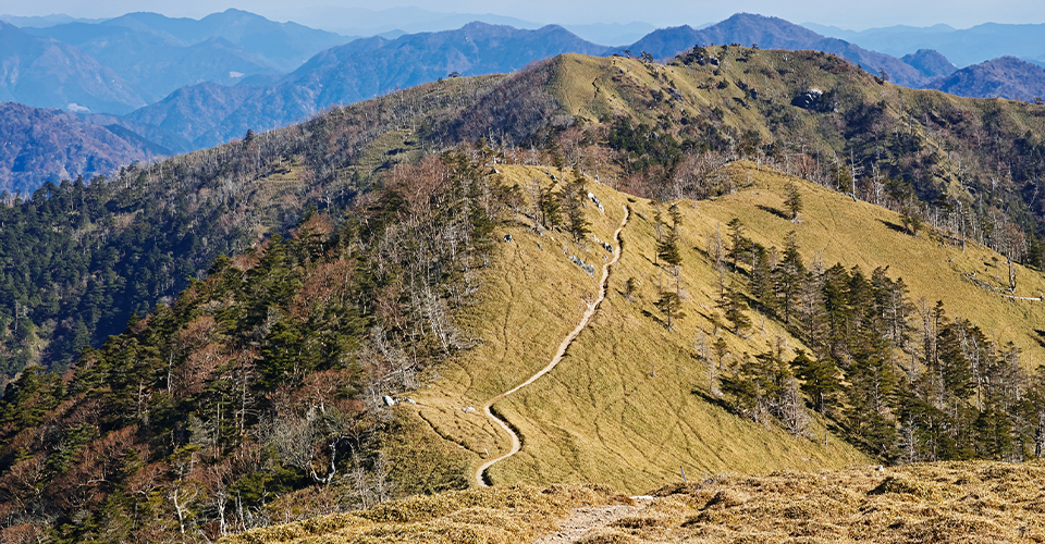 徳島県の南西部に位置する剣山(つるぎさん)は、日本百名山の一つに数えられる標高1,955mの山です。4月下旬~11月末に運行しているリフトを使用すれば山頂近くの西島駅まで登れます。西島駅からは4コースの登山道が整備されており、レベルや体力に合わせてコースを選べます。初心者には約1時間で山頂を目指す「大剣(おおつる)神社コース」がおすすめです。山頂の展望デッキからは、360°に広がる徳島の山々を見下ろせます。