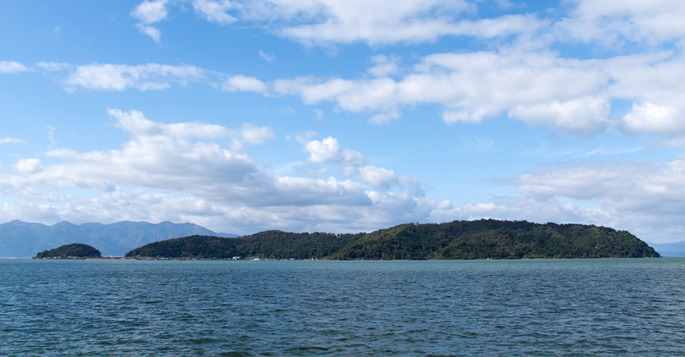 琵琶湖に浮かぶ4つの島のうち、唯一人が住んでいる島です。島までは堀切港から船で約10分で行くことができます。島内には猫が多くいることから猫島とも呼ばれています。奥津嶋神社は島民からは「宮さん」と呼ばれ、親しまれている神社です。おみくじはありませんが、絵馬や御朱印があります。島内唯一のカフェである「カフェいっぷくどう」では、手作りのケーキやおいしいコーヒーをいただきながら、ゆっくり過ごせます。