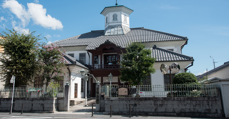 元々は1877年に八幡東学校として建設された建物。西洋建築の様式と日本の伝統技術が取り入れられて建築されたもので、国の有形文化財に登録されています。子どもの教育充実を図るため、設立費用のほとんどが近江商人の寄付で賄われました。役所や電報電話局であった時代もありましたが、現在は観光案内所となっています。こちらではお土産や特産品も販売しています。2階にはフリースペースがあり、各種催しが開催されています。