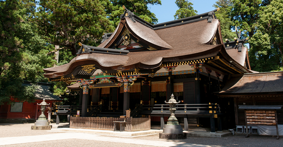 千葉県北東部に位置する香取市にある神社です。関東地方を中心に全国に約400社ある香取神社の総本社で、創建は神武天皇十八年(紀元前643年)と伝えられています。日本書紀に登場する武術の神様「経津主大神(ふつぬしのおおかみ)」をお祀りし、家内安全・交通安全・縁結び・安産などにご利益があると言われています。伝説が残る「三本杉」と「要石」は必見です。御朱印は、拝殿を正面にして右側にある授与所でいただけます。