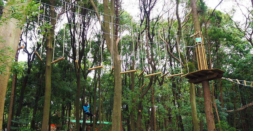 千葉県中央部に位置する長柄町(ながらまち)にある屋外レジャー施設です。健康・スポーツをテーマにした複合リゾート「リソルの森」内に、自然を生かした66種類のアクティビティを備えています。「自分の安全は自分で守る」をテーマとしており、各コースに出る際には必ずハーネスを着用します。予約制のため、インターネットか電話で事前予約が必須です。服装は、汚れてもいい動きやすい服装(スカートはNG)と運動靴で行くのがベスト。