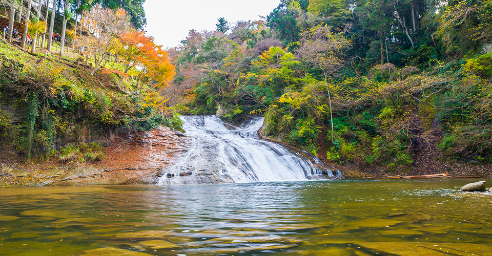 房総半島のほぼ中央に位置する渓谷です。春には桜、秋には紅葉と、四季折々の美しい景観を楽しめます。また、渓谷にはいくつもの滝が点在し、パワースポットとして近年人気を集めています。さらに、渓谷には温泉が湧いており、豊かな自然を眺めながら天然温泉を楽しめる施設が点在しています。「滝見苑 けんこう村 ごりやくの湯」等、日帰りで温泉を楽しめる施設もあり、ハイキングの後に立ち寄ることもできます。