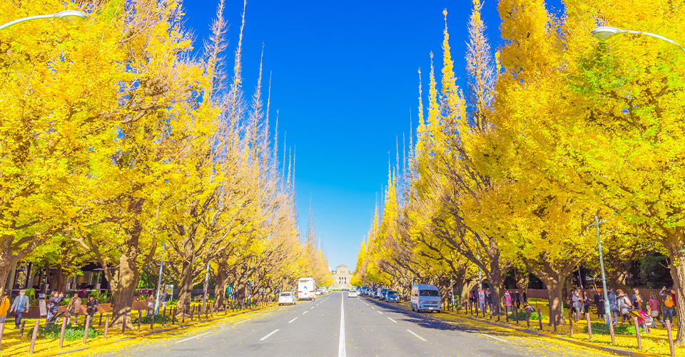 明治神宮外苑は、霞ヶ丘町から北青山にかけて広がる洋風庭園。周辺には神宮球場などのスポーツ施設や聖徳記念絵画館などのスポットが数多くあります。夏に開催される「神宮外苑花火大会」は夏の風物詩。11月下旬~12月上旬には、青山通りから聖徳記念絵画館にかけての美しいイチョウ並木が見ごろを迎えます。歴史に触れたり、スポーツを観戦したり、四季折々の自然の中を散策したりと、様々な楽しみ方ができるスポットです。