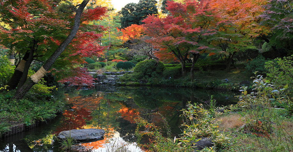 甘泉園(かんせんえん)公園は、新宿区北部の西早稲田にある公園。子どもたちが遊べる遊具が豊富な児童コーナー、2面のテニスコート、日本庭園の3つのエリアに分かれています。テニスコートは事前予約が必要ですが、新宿区在住でない方でも利用できます。日本庭園は池を中心とした見事な回遊式となっており、様々な植物の四季折々の姿を楽しめます。特に紅葉は美しく、見ごたえがあります。すぐ近くには、消防関係者の間で有名な「水稲荷神社」があります。
