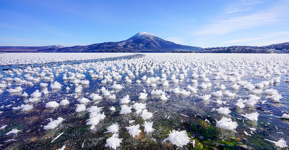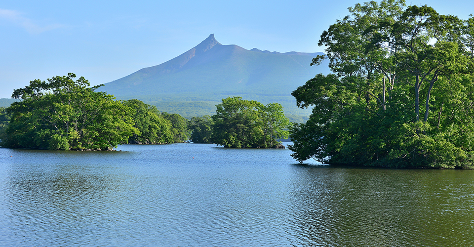 大沼国定公園は、北海道南部の七飯町に位置する自然公園です。駒ヶ岳の麓に広がる「大沼・小沼・蓴菜沼(じゅんさいぬま)」の3つの湖沼から構成される景勝地であり、公園内の湖には、大小126の島が点在しています。春から秋はサイクリングやボート、遊覧船など、冬になるとワカサギ釣りやスノーモービルなど、季節ごとのアクティビティも豊富です。湖畔には遊歩道やサイクリングロードが整備されており、散策も可能です。園内からは標高1131mの活火山・駒ヶ岳の雄大な姿を望めるので、撮影スポットとしても人気です。