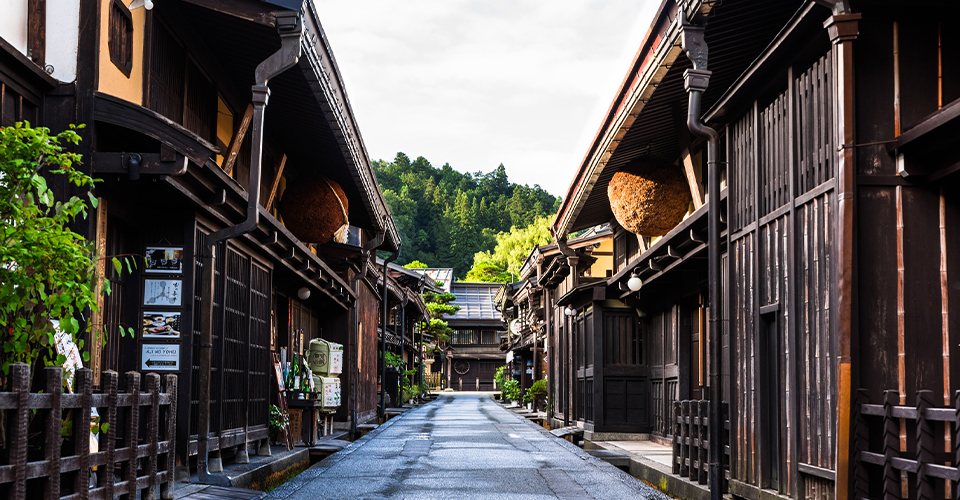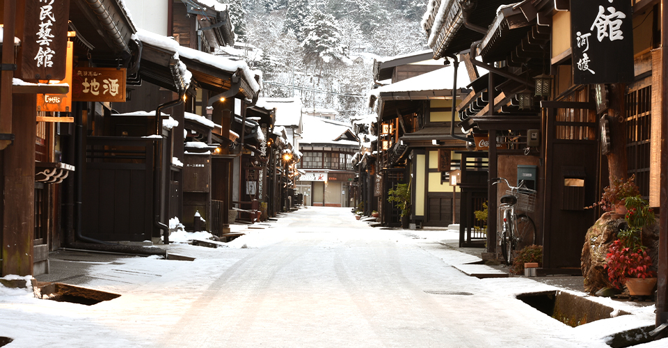 北アルプスの大自然に囲まれた飛騨高山には、徳川幕府の代官が政治を行った「高山陣屋」や、日本三大朝市の一つである「宮川朝市」等の歴史的建造物や文化が色濃く残っています。中でも観光で人気なのが、JR高山駅からほど近い「さんまち通り」。趣深い家屋が立ち並び、「飛騨牛のにぎり寿司」や「飛騨牛つくね」等のご当地グルメの食べ歩きが楽しめます。旅館「本陣平野屋 花兆庵」で、思う存分古都の風情を味わうのもおすすめです。