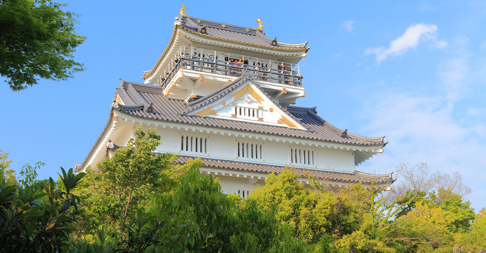 大垣城は、1600年の「関ヶ原の戦い」で石田三成が本陣を構えたことで知られています。旧国宝の天守は太平洋戦争の空襲により焼失しましたが、戦後復元されました。唯一戦火を逃れた「内柳門」や、全国的に珍しい4層4階の立派な天守閣が見どころです。受付では、岐阜の名産である「美濃和紙」を使用した御朱印がいただけます。大垣城の位置する「大垣公園」には市内一大きな複合遊具があり、お子さま連れでもゆっくりと名城を鑑賞できます。