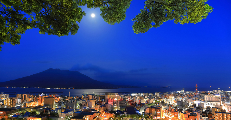 鹿児島のシンボルといわれる桜島は、北岳・南岳の2つが合わさる複合活火山で、今も噴煙を上げる活火山です。南岳の麓にある有村溶岩展望所からは、大噴火で生まれた溶岩原と荒々しい山肌を観ることができます。全長約1キロメートルの遊歩道からは、山だけでなく、錦江湾も一望でき、天気が良ければ、開聞岳まで望むことができます。北岳中腹にある湯之平展望所は一般客が行ける最高地点で、眼下に広がる市街地と静かな湾との対比が印象的。夕方以降は、夕日、夜景もすばらしく、ゆっくり訪れたい場所です。