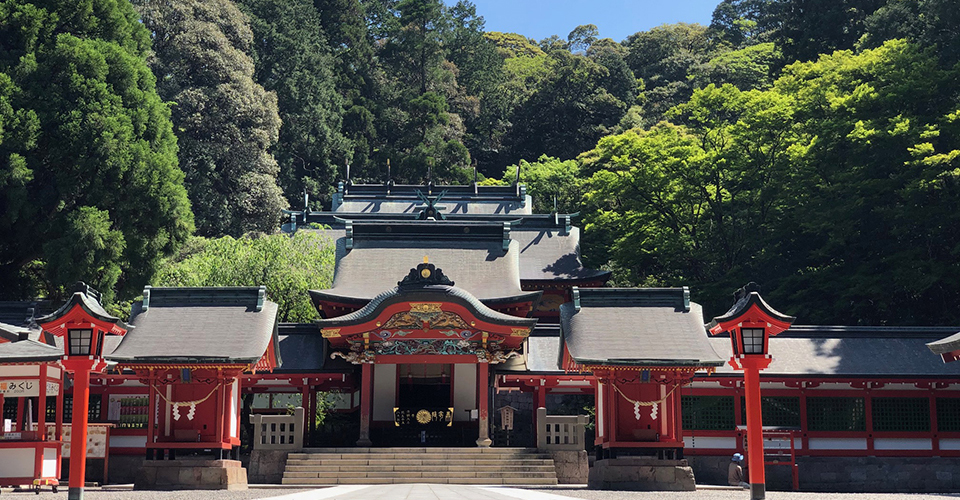 「長崎鼻」は、薩摩半島の最南端に突き出た岬です。天気のよい日は南の洋上に屋久島や竹島、硫黄島が見えるでしょう。岬にある薩摩長崎鼻灯台は、日本ロマンチスト協会が展開している「恋する灯台プロジェクト」において、「恋する灯台」に認定されました。ウミガメの産卵地であり、浦島太郎が竜宮へ旅だった岬との言い伝えがあることから「竜宮鼻」とも呼ばれています。乙姫様をお祀りしている「龍宮神社」もあり、「境内にある浦島太郎とカメの像を2周しカメを撫でたら願いが叶う」「貝殻を購入し、裏に名前・表に願いを書く」など、さまざまな願掛けができます。