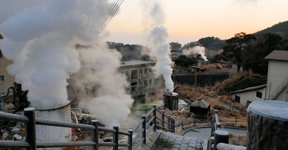 「霧島温泉郷」は、標高約600mから850mに点在する温泉地です。「新湯・林田・硫黄谷・丸尾・栗川・湯之谷・殿湯・関平・野々湯」の9つの温泉の総称です。霧島温泉郷の中心にある「霧島温泉市場」では、観光案内所や特産品を扱う土産屋、食事処、足湯などが集結。特産品である霧島高原ロイヤルポーク、芋ようかんの加工品のほか、温泉たまごや蒸し野菜、温泉まんじゅうなどがあります。温泉郷の近辺には、森林セラピーロードや丸尾滝、布引滝、千畳敷、霧島最古といわれる岩風呂などの名所もあります。