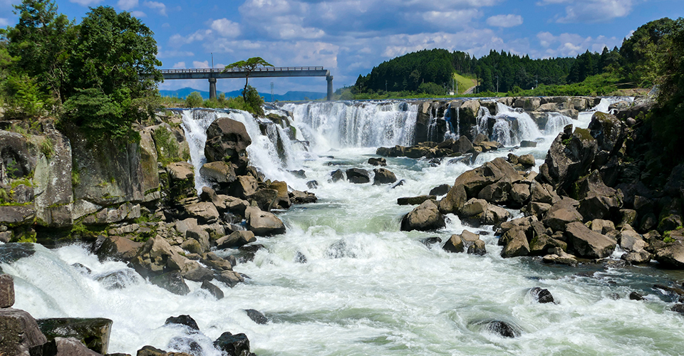 「曽木の滝公園」は、東洋のナイアガラとも呼ばれる曽木の滝があるスポットです。「曽木の滝」は滝幅約210m・高さ約12mであり、岩肌を削るように流れ落ちる水流と轟音を堪能できます。春には桜やつつじ、秋には紅葉や銀杏などの景色と一緒に鑑賞できるでしょう。一帯は自然公園となっており、季節のイベントも開催される点が魅力です。曽木の滝の近隣には、軽食が食べられる「ピクニックマルシェ」や、丼ものが食べられるフードコートなど飲食施設が充実。黒豚や地鶏、現地の新鮮な野菜を使った料理などを堪能できます。