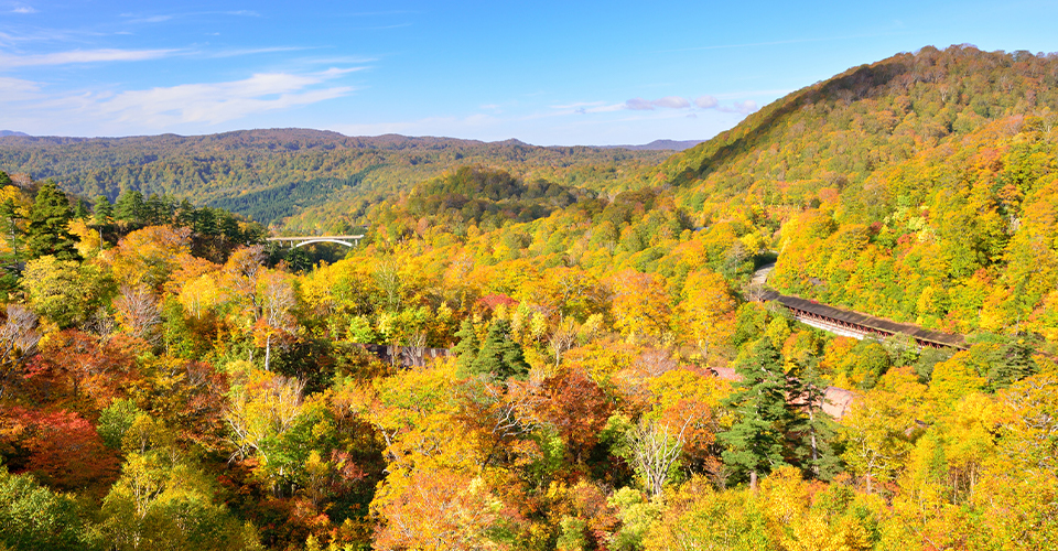 岩手と秋田の両県にまたがる山群の八幡平(はちまんたい)。その一帯に点在する温泉を総称して「八幡平温泉郷」と呼びます。「平」という名前の通り、なだらかなシルエットが特徴で、春は登山、夏はトレッキング、冬はスキーと1年を通してアクティブに遊べます。周辺には宿泊施設が多数あり、「八幡平マウンテンホテル」や「アクティブリゾーツ 岩手八幡平」などでゆっくり過ごすのがおすすめ。日帰りで温泉を楽しむなら「焼走りの湯」が人気です。
