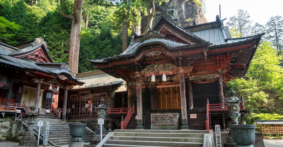 群馬県の南西部に位置する高崎市にある神社です。火の神「火産霊神(ほむすびのかみ)」と、土の神「埴山毘売神(はにやまひめのかみ)」を主祭神としてお祀りし、鎮火・商売繁盛・五穀豊穣などにご利益があると言われています。石段の途中にある「双龍門」と「鉾岩(ほこいわ)」は圧巻。御朱印は、拝殿の横にある社務所でいただけるほか、お札やお守りの購入も可能。ランチは榛名神社の門前にある「蕎麦茶屋 榛名山 本坊」がおすすめです。