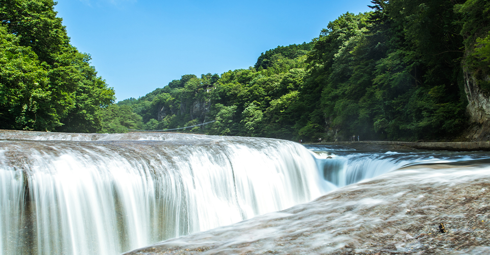 群馬県北部、沼田市にある滝です。岩の割れ目に三方から水が流れ落ちる独特の形状をしており、その圧倒的な迫力から「東陽のナイアガラ」と呼ばれています。春には雪解け水によって水量が増えるので、迫力がさらに増します。また、夏には涼風が吹き抜ける癒しの場所、秋には紅葉スポットとして、多くの観光客で賑わいます。周辺には「はんにゃ岩」や「鱒飛の滝」などの観光スポットのほか、「老神(おいがみ)温泉」もあり、のんびり過ごせます。