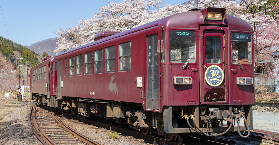 群馬県桐生市の「桐生駅」と栃木県日光市の「間藤(まとう)駅」を結ぶ鉄道です。渡良瀬川に沿って山間を蛇行しながら走るため、車窓から豊かな自然を楽しめるのが特徴。春は桜、夏は新緑、秋は紅葉、冬はイルミネーションと四季折々の風景を望めます。窓ガラスがないオープンタイプの「トロッコ列車」も運行しており、風を感じながら美しい渓谷の景色を楽しめます。トロッコ列車は毎日運転していないので、事前に公式サイトで確認してください。