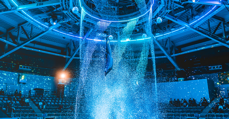 品川プリンスホテル内にある音・光・映像による演出と生き物たちを融合させる最先端エンターテインメント施設。ゆらゆらと漂うクラゲが時間や季節ごとに変わる色に照らされて幻想的な空間を作り出す水槽や、天窓から光が差し込む長さ約20mもの海中トンネルをエイやマンタが泳ぐ“ワンダーチューブ”など、非日常の世界が広がります。直径25mの大型円形プール“ザスタジアム”で行われるウォーターカーテンや照明を使ったイルカショーが一番人気。ひと味違う水族館体験ができます(入場料は大人2,800円)。