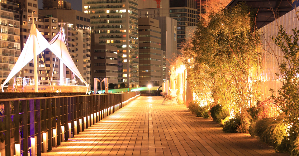 江戸時代に築かれた第四台場をベースに、1980年代から再開発が始まった約20万㎡の島。目黒川と京浜運河に囲まれ、かつては倉庫群として使われていました。現在はオフィスを中心に、レストラン、カフェ、多彩なショップ、ホテルなどが入る高層ビルが立ち並びます。“アートになる島、ハートのある街”をコンセプトに、アートホールや数々のオブジェが島内を彩ります。ゆったりと流れる運河、心地良い風と緑、空を感じながら、水辺のベーカリーショップやレストランでのんびりと過ごすのがおすすめです。