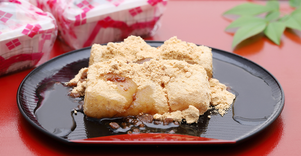 「桔梗信玄餅」は、山梨の「桔梗屋」が製造する銘菓。とろりとした黒蜜のコクときな粉の香ばしさがよく合います。可愛らしい風呂敷は、創業以来、女性の手によって一つひとつ結ばれています。本社工場「桔梗信玄餅工場テーマパーク」は、アウトレットやカフェを備えた観光スポット。毎日行われている「お菓子詰め放題」は、家族連れに人気です。他にも工場を見学したり、「桔梗信玄生プリン」等のお土産を買うなどして楽しめます。