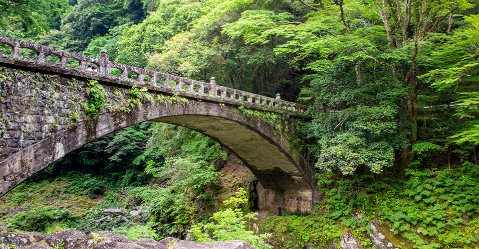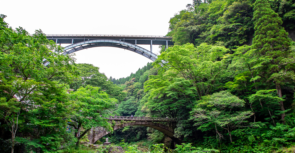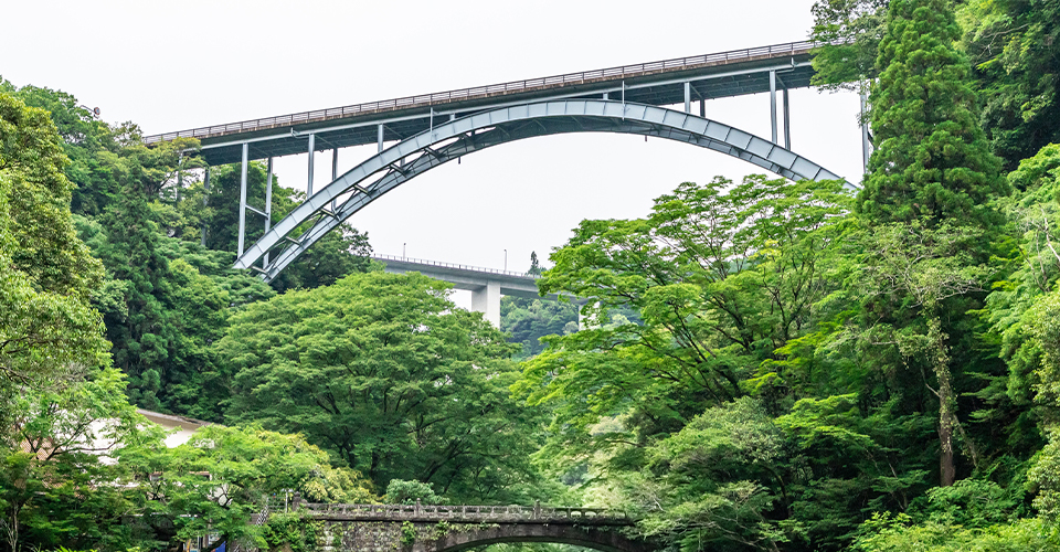 一つの渓谷に3本のアーチ橋が架かるのは初めてとされる神橋、高千穂大橋、神都高千穂大橋(コンクリート橋)と三代の橋。高千穂町名物のこの3本の橋は、それぞれ趣が異なります。大自然を味わいたいならここへ。