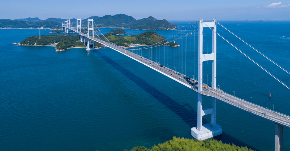 瀬戸内に浮かぶ島々をつなぎ、本州と四国を結ぶ「瀬戸内しまなみ海道」。橋には自転車・歩行者専用道が整備されており、瀬戸内の美しく雄大な風景を味わえるサイクリングロードとして、国内外から注目を集めています。秋にはしまなみ海道を舞台としたウォーキング大会が開催され、5,000人規模の参加者を集めています。イルカと触れあえる「ドルフィンファームしまなみ」や海賊の博物館「今治市村上海賊ミュージアム」など観光スポットも多くあり、島を存分に楽しむなら、2日以上かけてゆっくり渡るのがおすすめです。