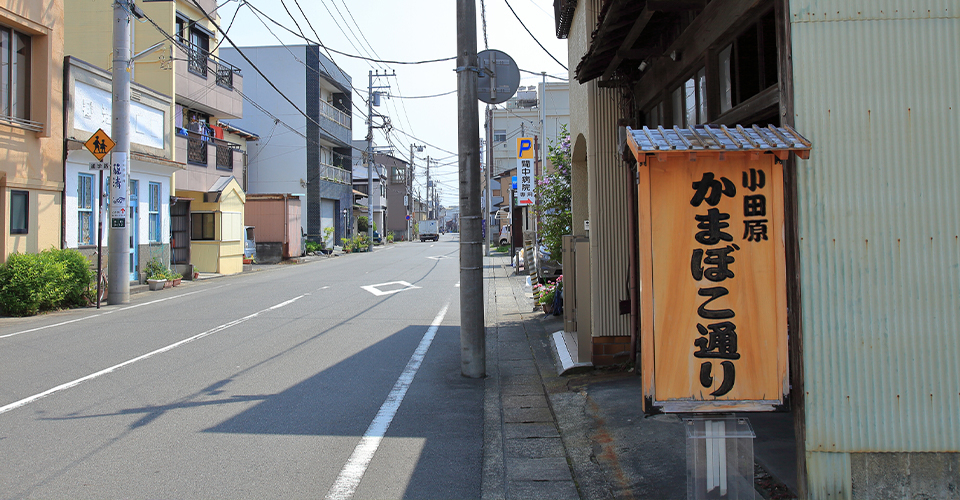 小田原駅から少し南に離れた、旧東海道小田原筋にある通り。小田原名物のかまぼこを販売する各社の本店のほか、干物屋や鰹節屋、飲食店などが軒を連ねています。食べ歩きするなら「小田原かまぼこ発祥の店 鱗吉(うろこき)」の「じねんじょ棒」は外せません。店内には様々な種類の商品が揃っており、お土産用のかまぼこも購入できます。ゆっくり食事を楽しむなら、ご当地グルメ「小田原おでん」を肴においしいお酒を味わえる「小田原おでん本店」がおすすめです。