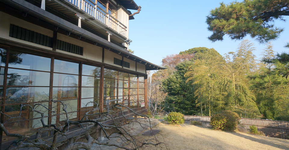 小田原城から徒歩約10分の場所にある歴史的建造物。「豊臣秀吉の右腕」と言われた天才軍師・黒田官兵衛の子孫にあたる政治家の黒田長成(ながしげ)の別邸として、明治39年(1906年)に建てられました。茶室建築の意匠を取り入れた数寄屋造りの建物で、国の有形文化財に登録されています。現在は建物の一角(1階)がカフェになっており、 庭園や相模湾を眺めながらゆったり過ごせます。四季折々に合わせた企画展やコンサートなどのイベントも不定期で開催しています。