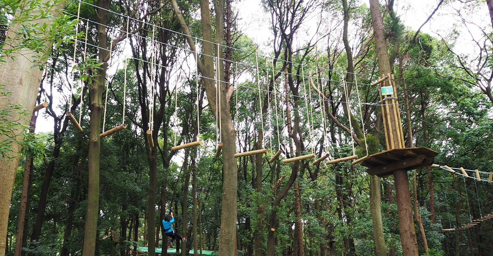 高速道路を降りてわずか3分の場所にあるレジャー施設。専用ハーネスを着けて森の木から木を空中移動していくフランス発祥のアウトドアアクティビティを楽しめます。約1ヘクタールの敷地には、家族で楽しめる「ジップトリップコース」と子供向け(身長90cm以上~小学3年生まで)の「キッズコース」があります。土日や連休は混雑するため、公式Webサイトか電話で事前に予約しておくことをおすすめします。