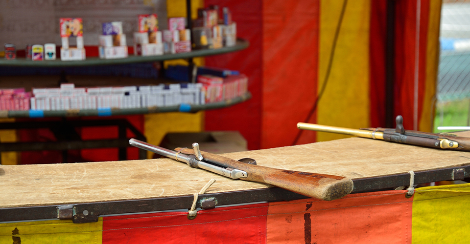 温泉街の中心部にある「射的本舗まんだら堂」は、数々のテレビ番組で紹介された有名な射的場。レトロな外壁に大きな赤い看板が目印です。倒した的の点数の合計で景品がもらえる仕組みで、一人でも大人数でも楽しめます。景品はおもちゃや駄菓子、招き猫等の小さな置物から人気キャラクターのぬいぐるみまで様々。1回500円、最大で12人が同時に遊べるため、混雑しても長く待たずに入れます。射的を満喫した後は、隣にある「陽楽」で町中華を楽しめます。