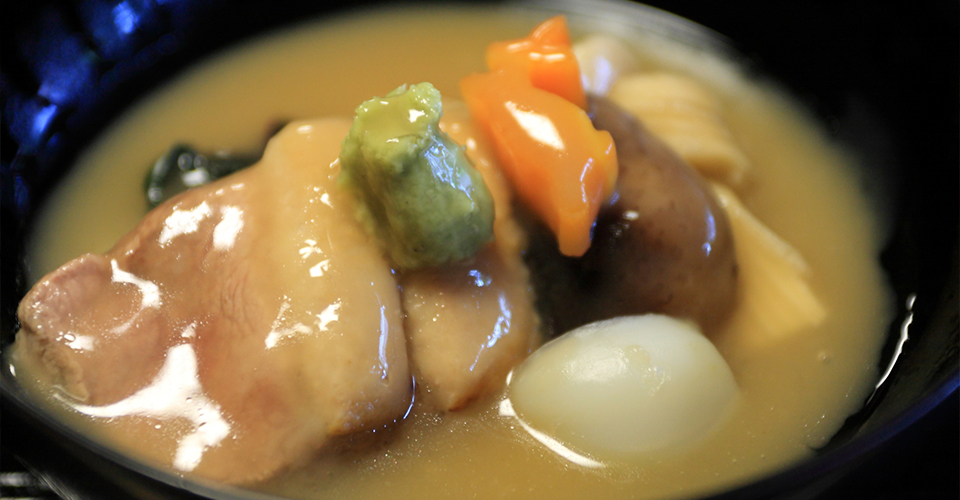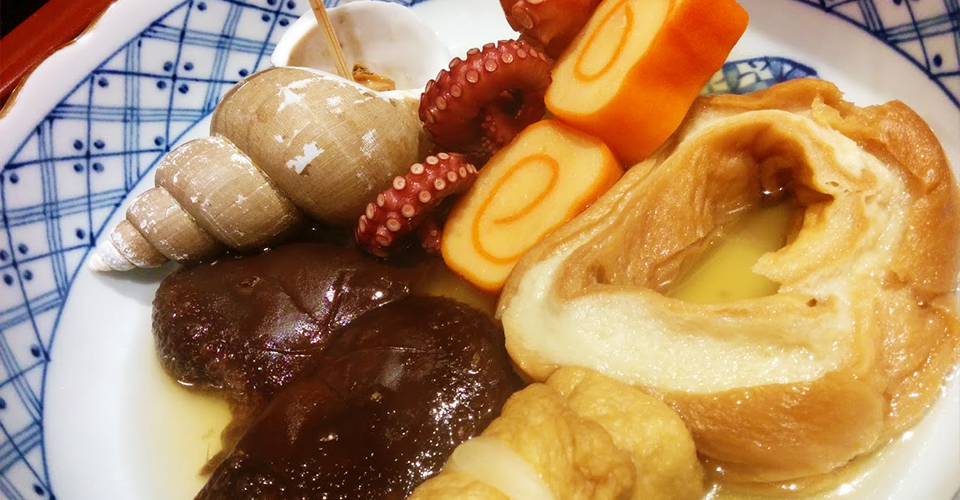 「金沢おでん」とは、ダシの効いたやさしい味わいと、車麩やバイ貝などのちょっと変わったおでん種が特徴的です。金沢にはたくさんのおでん屋さんがありますが、中でも「赤玉本店」のおでんは透き通った上品なダシが人気で、地元民や観光客でいつも賑わっています。ダシをたっぷりと吸ったジューシーな車麩や、たまご焼きが特に人気です。冬にしか食べられない、カニの身や味噌を甲羅に詰めておでんのつゆで煮た「カニ面」もおすすめです。