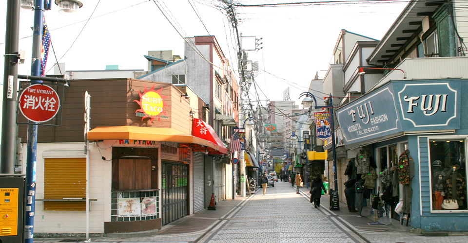 京急汐入駅から横須賀米海軍基地まで続く「ドブ板通り商店街」は、異国情緒あふれる街並みの商店街です。戦後、横須賀に駐留したアメリカ軍の街として栄えました。フライトジャケットやMA-1等のミリタリーなアイテムや、横須賀発祥の「スカジャン」等を販売するお店が軒を連ねます。おすすめのグルメは、アメリカ海軍の伝統的なハンバーガー「ネイビーバーガー」。米軍基地の正面にある有名店「ハニービー」では、牛肉100%のジューシーなパティを、こんがり焼いたバンズではさんだボリューム満点のハンバーガーを味わえます。