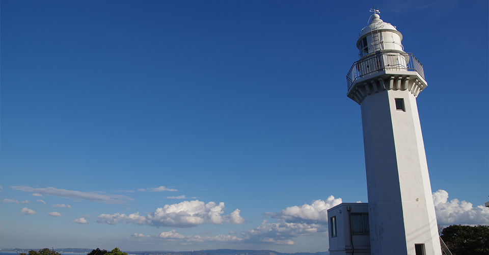 三浦半島の東端に位置する「観音埼灯台」は、全国に16しかない「登れる灯台」の一つです。1869年に日本最初の洋式灯台として建設され、1925年に建て替えられたのが3代目にあたる現在の灯台です。白いコンクリート造りの灯台と海の深い青、そして岬に生い茂る緑のコントラストが魅力。内部のらせん階段を上った先にある展望階からは、東京湾や太平洋、浦賀水路を行き交う世界中の船が一望できます。訪れる時間帯は、空と海がオレンジ色に染まる夕暮れ時がおすすめです。