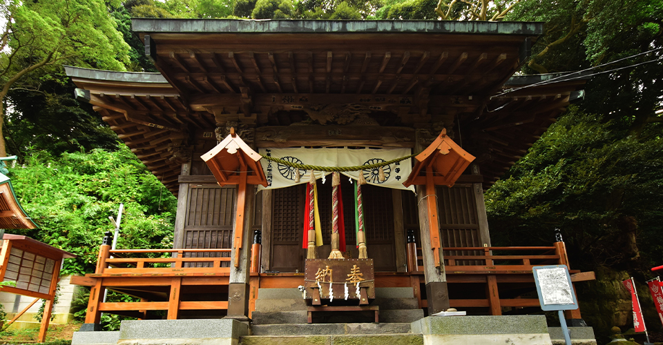 「横須賀美術館」から徒歩10分の場所にある「走水(はしりみず)神社」は、ヤマトタケルノミコトとその妻であるオトタチバナヒメノミコトを御祭神として祀る神社です。夫を天災から救うためにオトタチバナヒメノミコト自ら犠牲になった伝説があることから、恋愛成就や縁結びにご利益があるとされています。境内には、夫婦神が暮らした「御所ヶ崎」の砂が納められた「御砂倉」があり、縁結びのお守りとして持ち帰ることができます。御朱印は本殿の右側にある社務所にていただけます。