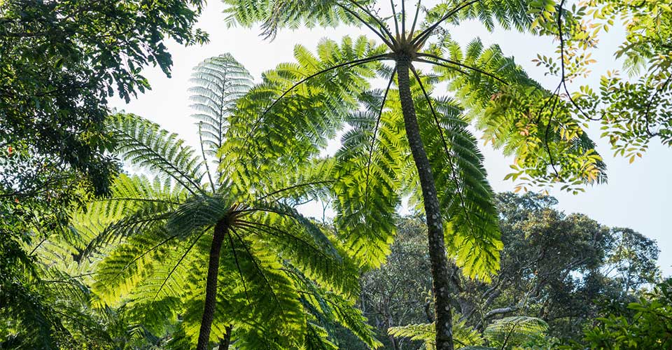 奄美大島の名瀬に位置し、天然の亜熱帯広葉樹が広がる金作原原生林。恐竜の時代から生息し「生きた化石」と言われるヒカゲヘゴが生い茂ります。また、ルリカケスなどの奄美固有種や、国指定天然記念物の動植物が生息する貴重な場所です。