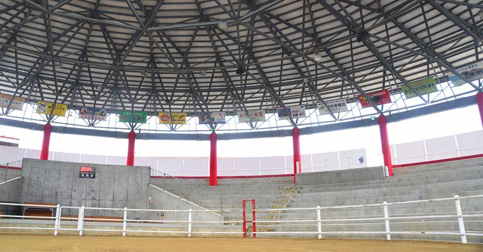 徳之島の名物・闘牛の試合が行われる闘牛場。年に3回(1月・5月・10月)は闘牛の大会が開催され賑わいます。