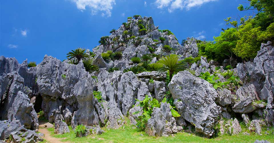 沖縄本島の北部に位置する「やんばる国立公園」の中にあるASMUI Spiritual Hikes(アスムイ スピリチュアル ハイクス)(※旧:大石林山)。ユニークな奇岩や亜熱帯の森、海を望むパノラマなどを楽しむことができます。特に、石灰岩が長い期間をかけて雨水などにより浸食され出来た「熱帯カルスト地形」が見どころで、様々な形状の奇岩が来る人を楽しませます。散策には3種類のウォーキングコースに加え、ウッドデッキのバリアフリーコースがあり、雄大な景色を堪能できます。