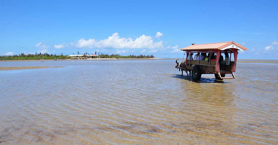 遠浅のため、西表島から水牛車で渡るのが名物となっている小さな島。島全体が「亜熱帯植物楽園」となっています。島内は、マンタの通り道となっている海と小浜島を望む「マンタの浜」、ブーゲンビリアガーデン、「オオゴマダラ」などが見られる蝶々園、レストランなどがあり、南国らしい風景を楽しみながらのんびり過ごすのがおすすめです。