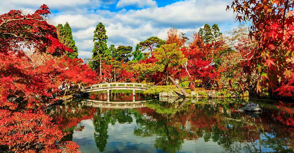 浄土宗西山禅林寺派総本山の寺院で、弘法大師の弟子が真言宗の道場として創建したのが起源といわれています。「もみじの永観堂」として親しまれており、紅葉の美しさは『古今和歌集』でも詠まれています。約3000本のもみじが庭園や境内を彩り、旅行者が選ぶ紅葉名所ランキングでは何度も上位に選ばれています。夜には境内がライトアップされ、昼とは違う幻想的な風景を楽しむことができます。境内の最も高い場所にある多宝塔では京都の街並みを見渡すこともできます。