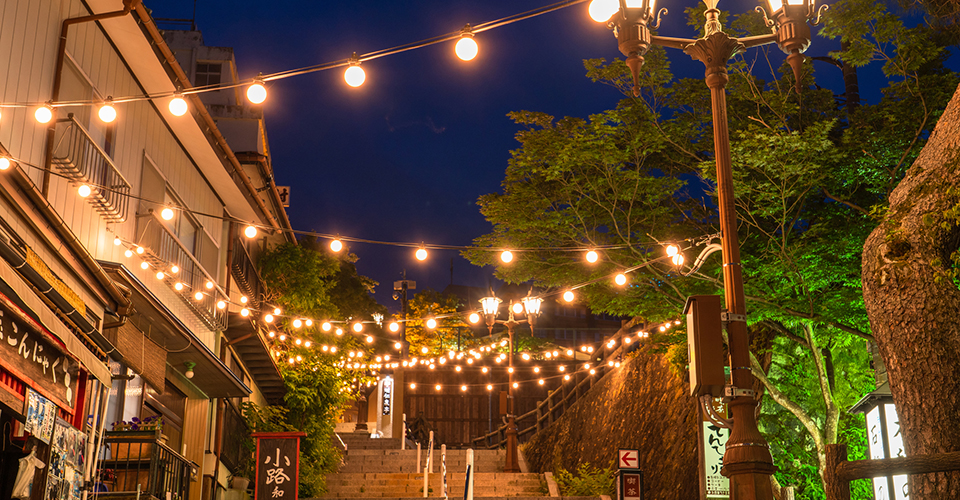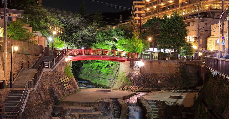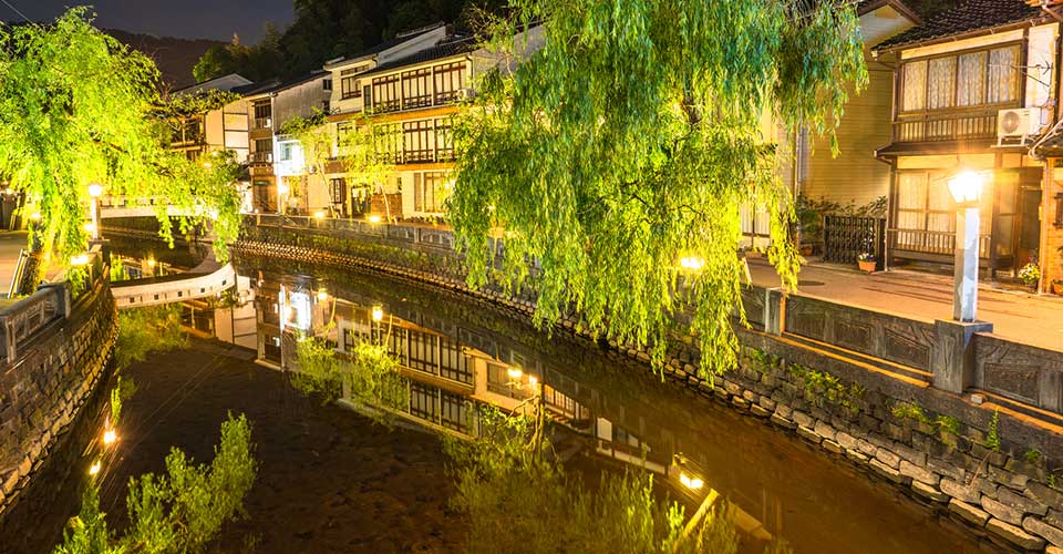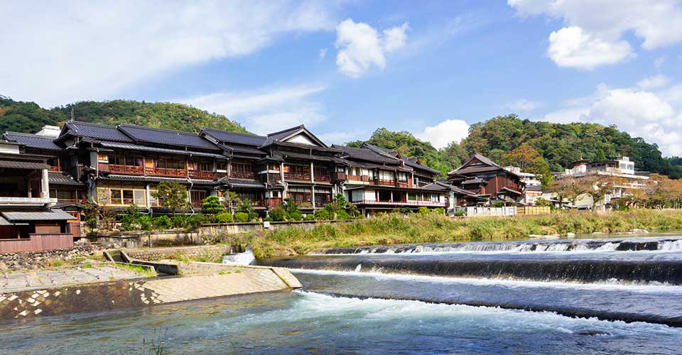 奈良時代に開湯した、歴史ある城崎温泉。泉質はナトリウム・カルシウム塩化物泉で、飲泉場も3カ所あります。川沿いに柳並木が広がる風情のある温泉街には7つの外湯があり、チェックイン後は浴衣姿でのんびり外湯めぐりを楽しめます。日本海に近い立地から海の幸が豊富で、「松葉がに」を求めてやってくる旅行客も多くいます。訪問の際は“但馬の小京都”出石(いずし)まで足を延ばして「出石皿そば」めぐりなどもおすすめです。