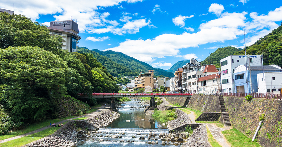 伊東温泉は、別府温泉・由布院温泉と並ぶ日本三大温泉のひとつに数えられます。泉質は単純泉や弱食塩泉が多く、さらりとした質感で体への刺激も少ないです。そのため乳幼児や高齢者でも入浴しやすく、リューマチの回復期や骨折の回復期などにも効果があるといわれています。市内には数多くの足湯や手湯の施設があり、松川公園の「ふれあいの湯」、伊豆高原駅前の「美足の湯」などが有名です。また、天城山を背にしつつ相模湾に向かって開けている地形であるため、海の幸とミカン・シイタケといった山の幸を両方楽しめます。