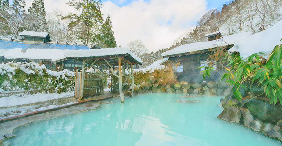 乳頭温泉郷は、秋田県・岩手県・青森県にまたがる乳頭山のふもとにある温泉郷です。ブナの原生林に囲まれており、冬は雪景色を眺めながら温泉に浸かれます。鶴の湯や妙の湯など7つの温泉があり、源泉は10種類以上で泉質もさまざま。例えば乳頭温泉郷で最古の「鶴の湯」には、ナトリウムやカルシウム塩化物などが含まれており、高血圧症や糖尿病などに効果があるといわれています。宿では、地元で採れた山芋や野菜を使った名物の「山の芋鍋」を食べられます。湯めぐり帖を買えば7つの温泉をすべて入浴可能です。