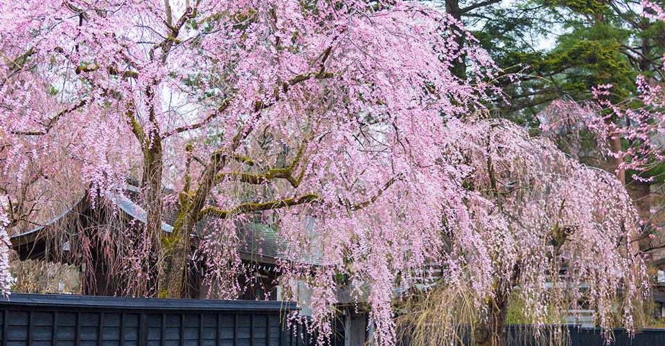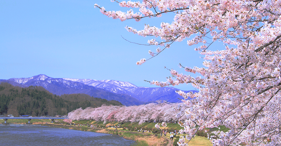 「みちのくの小京都」といわれ、江戸時代の城下町の面影を残す角館・武家屋敷通り。美しいピンク色のシダレザクラが黒塀に映え、趣があります。また、一部の桜は国の天然記念物に指定されています。桧木内川堤のソメイヨシノは1934年に上皇陛下の誕生記念として植樹された国指定名勝で、約2㎞に渡る桜のトンネルは圧巻の美しさです。どちらも桜の見ごろの時期は例年4月下旬~5月上旬で、同時期に「角館の桜まつり」が開催され、桜のライトアップなどが催されます。