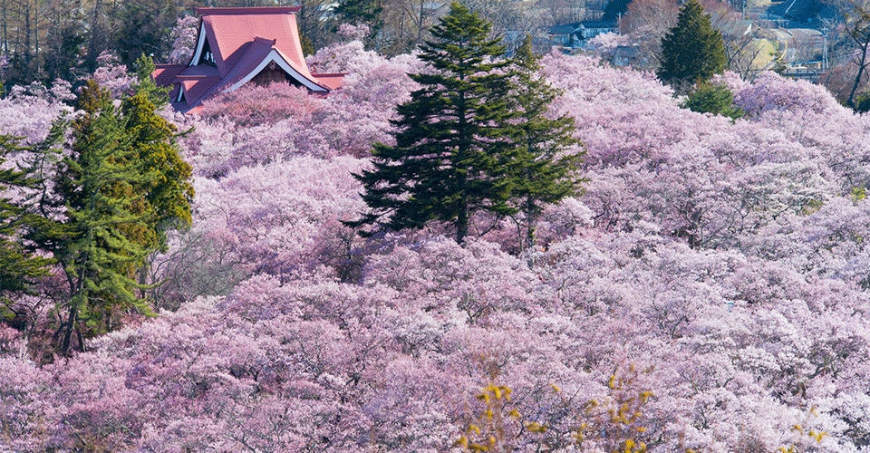 古くより桜の名所として知られる吉野山は、下千本・中千本・上千本・奥千本のエリアに分けられています。吉野山の桜は山下の下千本から順に山上の奥千本へと開花し、桜が山全体を彩る様は見事で「一目千本」といわれています。例年3月下旬~4月中旬には桜まつりや桜ライトアップが開催され、多くの人で賑わいます。