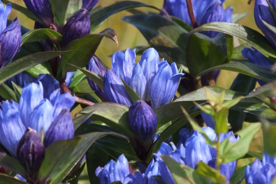 リンドウ科の多年草で、深い青紫色の筒状の花を咲かせます。湿地や沼地に群生し、秋の訪れを告げる花として知られています。