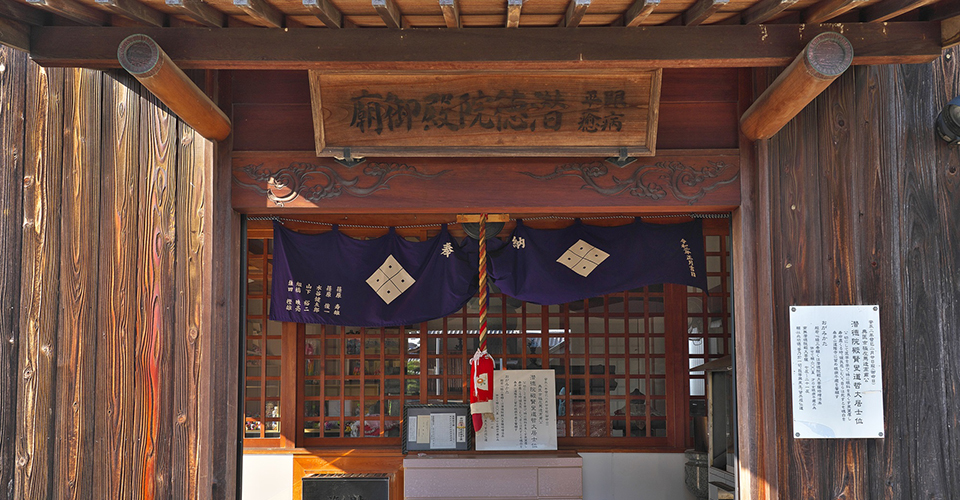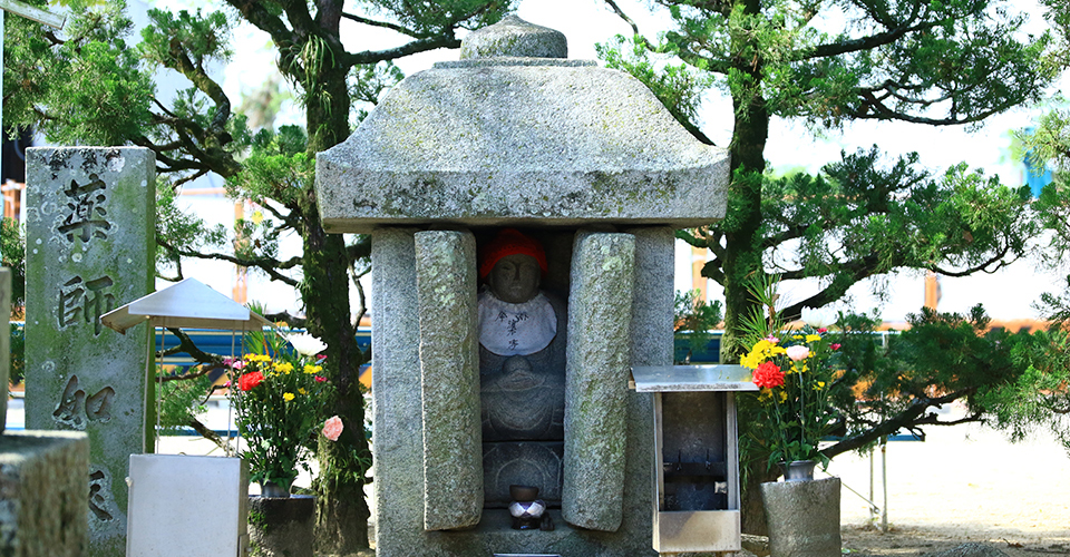 第77番札所「道隆寺」は、奈良時代初期創建の古刹です。土地の有力者がある時、光る桑の大木を矢で射ったところ、自身の乳母が倒れていたたため、悲しみから小さな薬師如来を彫像し、祀ったのが始まりだといわれています。その後、帰朝した空海が90㎝の薬師如来像を彫像し、体内仏として納め、現在の本尊としています。本堂の左手に「目治し薬師」の名で知られたお堂があります。江戸後期、薬師如来の慈悲で眼病が治った名医が、死に際に「我魂魄を道隆寺に留め世人を救わん」とお堂に誓願したことから、数え年の数だけ「目」を書いて祈願するとご利益があるとされています。