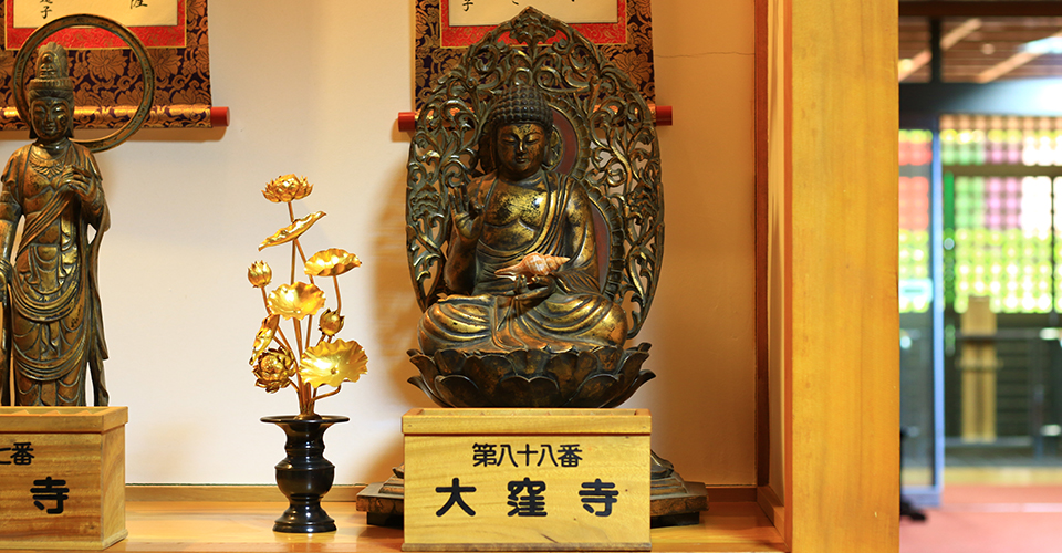壁面に刻まれた不動明王の前で行う「護摩祈祷」圧巻の「両界曼荼羅」、弘法大師・空海の筆法の書が刻まれた「大師之壁」、約3mの阿弥陀如来なども特別拝観が可能です。