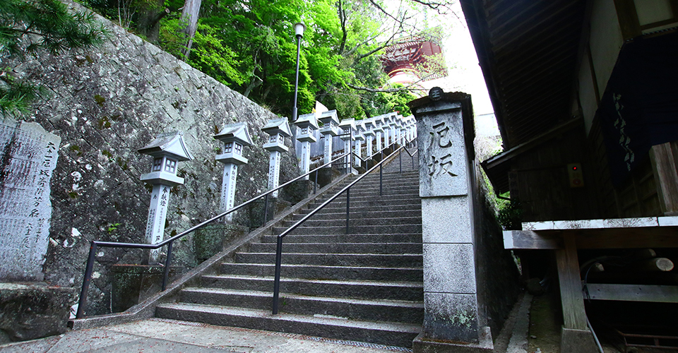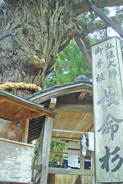 第6番札所「安楽寺」は、空海によって温泉湯治のご利益が伝えられた旧跡で、「温泉山」という山号がつけられています。今もなお大師堂前からは温泉が湧き出し、多くの巡礼者が心身を清め、疲れを癒す人気スポットです。温泉のほかにも本堂にある御本尊「薬師如来像」や、空海を猟師の矢から守った「厄除けのさか松」など、見どころが多いお寺としても知られています。