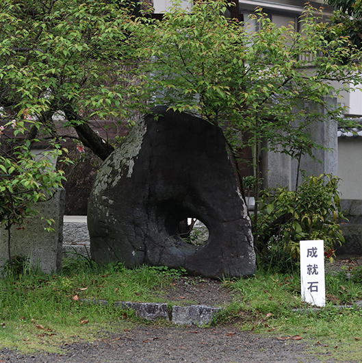 髙さ1mほどで中央に30~40cmの穴があいている不思議な石「成就石」。