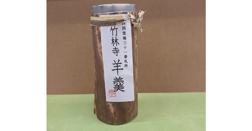第31番札所「竹林寺」の境内にある売店には、竹筒をモチーフにした容器が丸くて渋い、名物「竹林寺羊羹」が売られており、江戸・元禄時代から明治まで土佐藩の御用菓子だった老舗が作っています。遍路の旅の途中、歩きながら手を汚さず食べられるように、中身を押し出して糸で切れる仕様。ふたをとると表面の砂糖がシャリシャリで、筒をほぐしてから食べます。日持ちもするのでお土産としても人気があります。江戸時代の藩主たちが味わった歴史ある羊羹、ちょうどよい甘さとすっきりした後味、旅のおともにいかがですか?