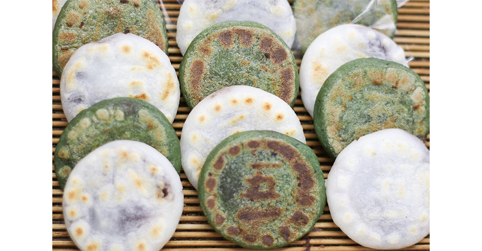 第51番札所「石手寺」の参道で人気を集めているのが石手寺名物「やきもち」です。お遍路さんの接待から生まれたものだといわれ、地元の人たちにも愛されています。米粉を使った薄型のお餅で、白餅とよもぎの2種類があります。表面は焼き目がついていて、中にはこしあんが入った素朴でやさしい味わい。寺の入口近くにある五十一番食堂では、コーヒーや抹茶、甘酒とのセットメニューも提供しているのでティータイムにもぴったりです。